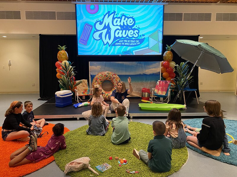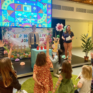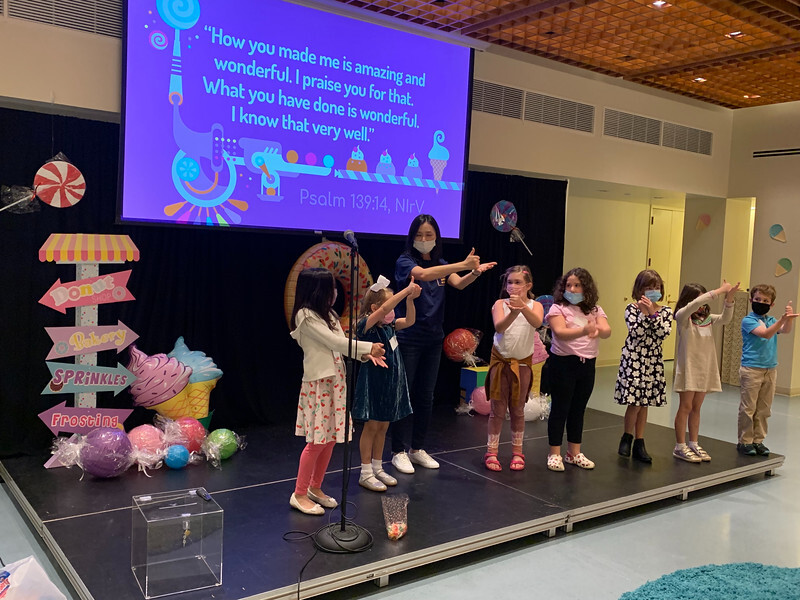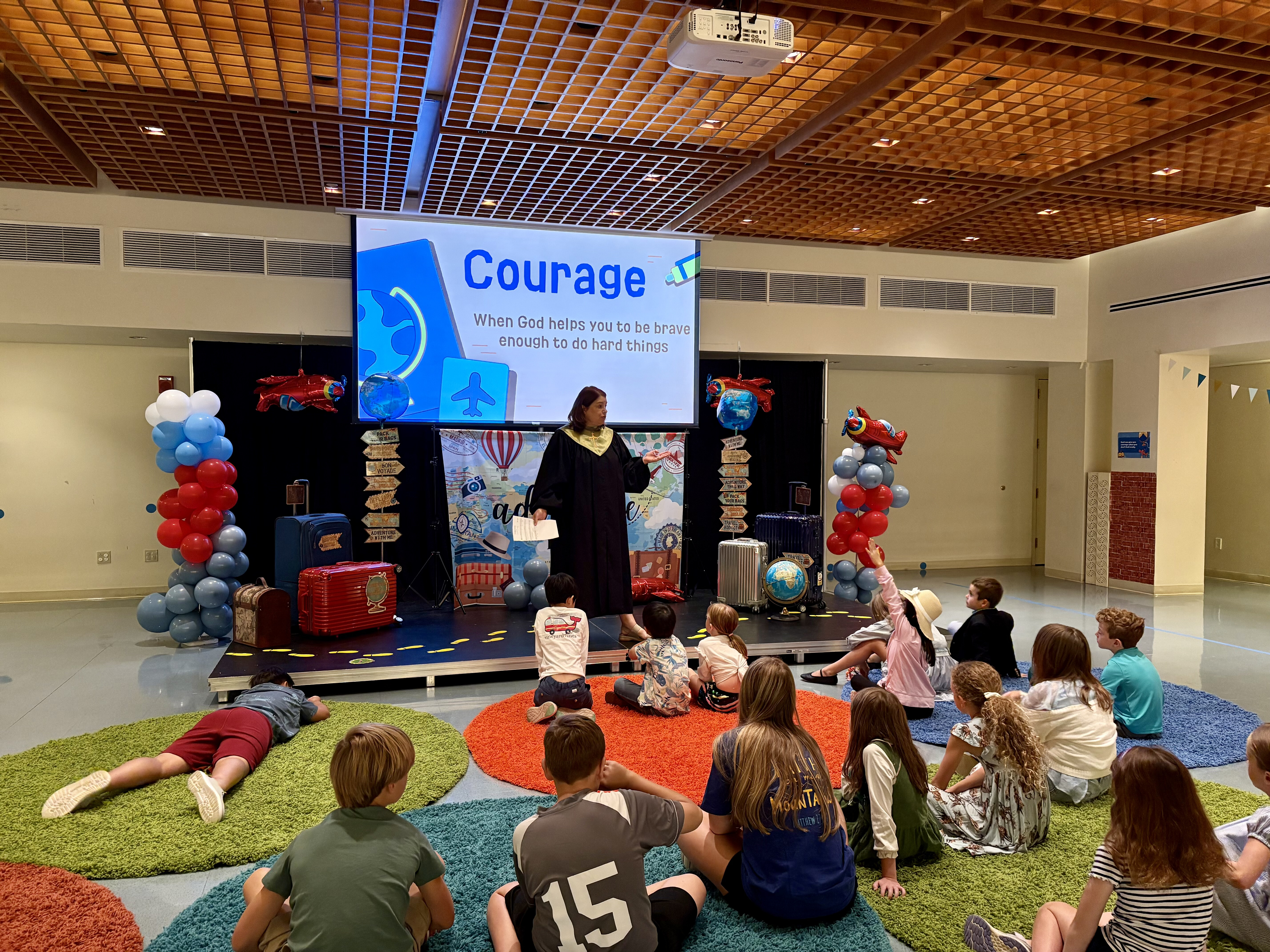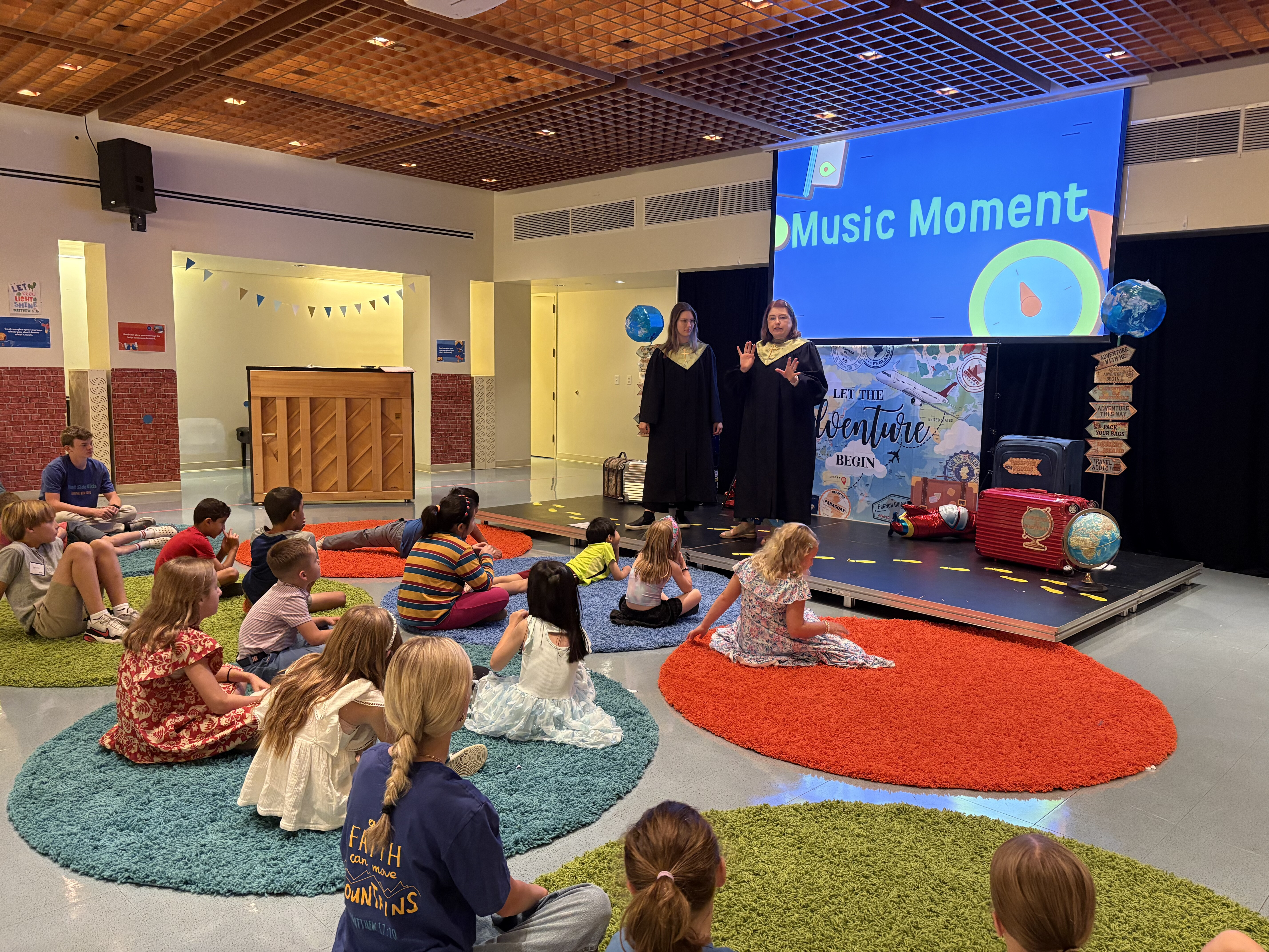 On Intergenerational Sundays, children are in worship with us. The children's choirs sing at the 10:30 am service, where the scripture follows the Sunday School lesson plan, and the sermon is family-friendly! The right-side transept also is transformed into a "Creative Worship Center" with colorful rugs for kids to sit on, coloring pages, and bingo games.