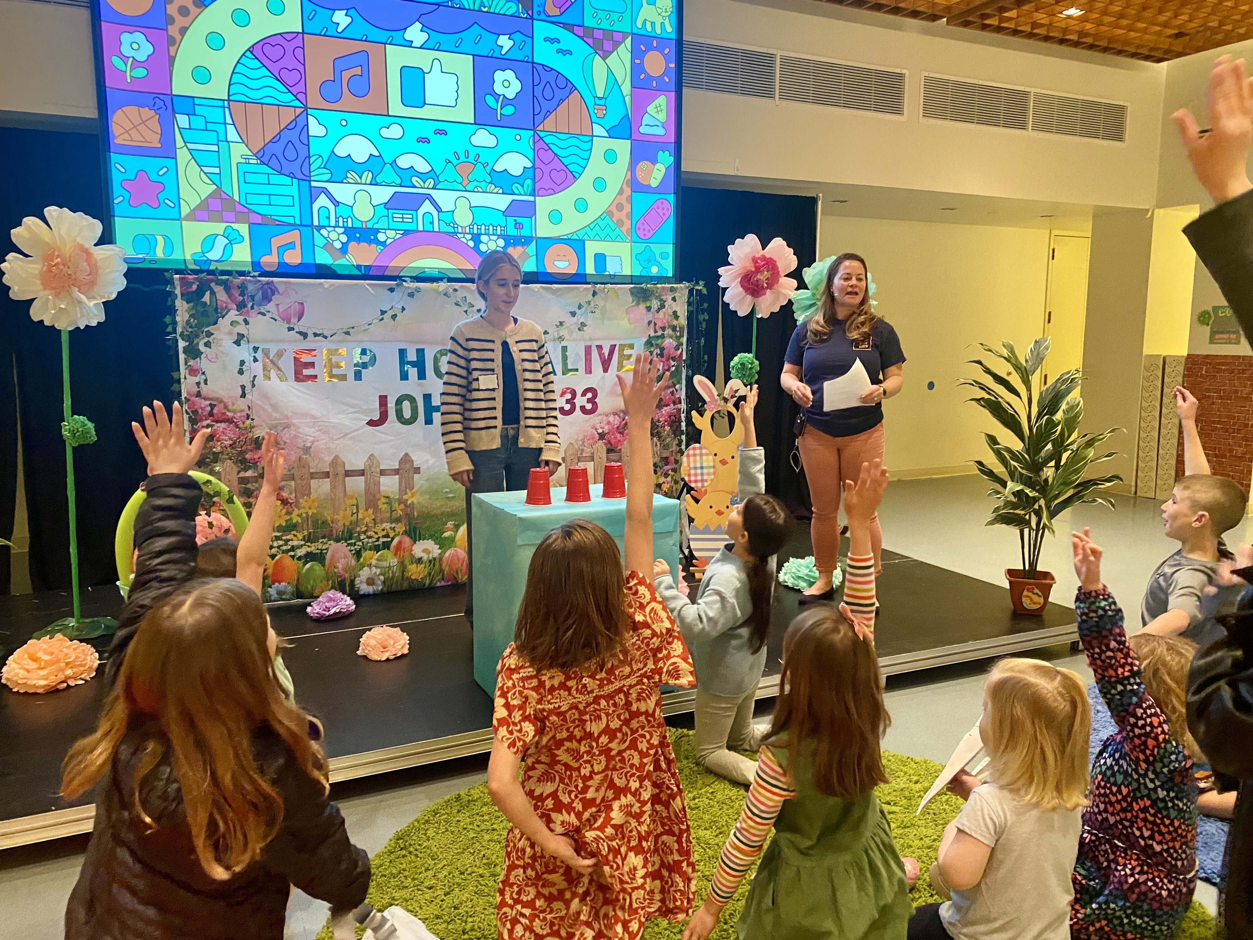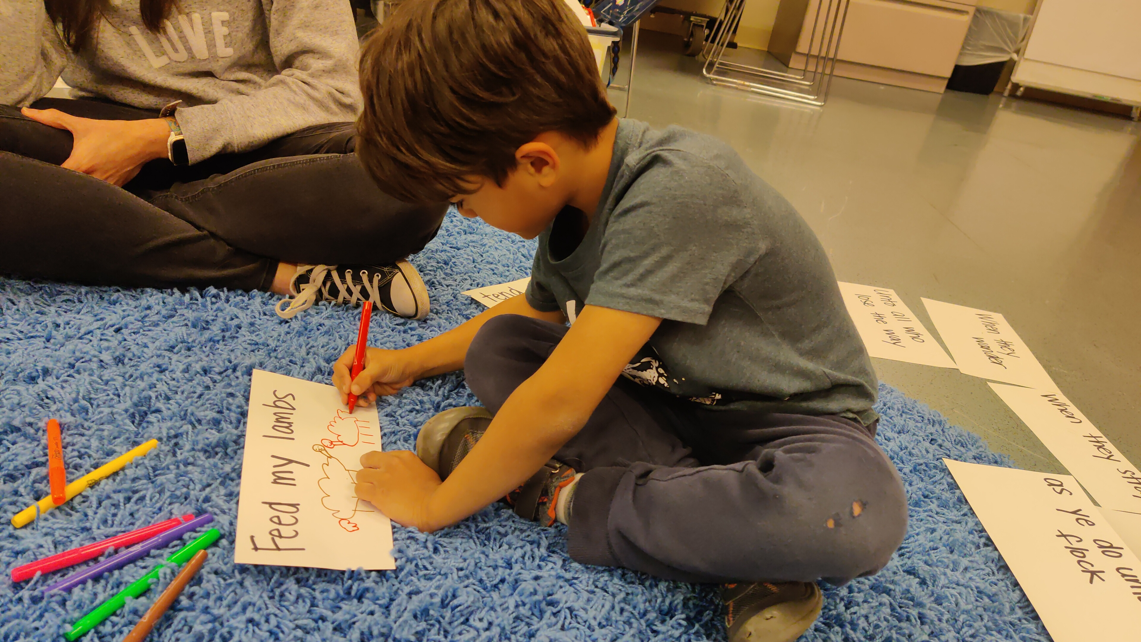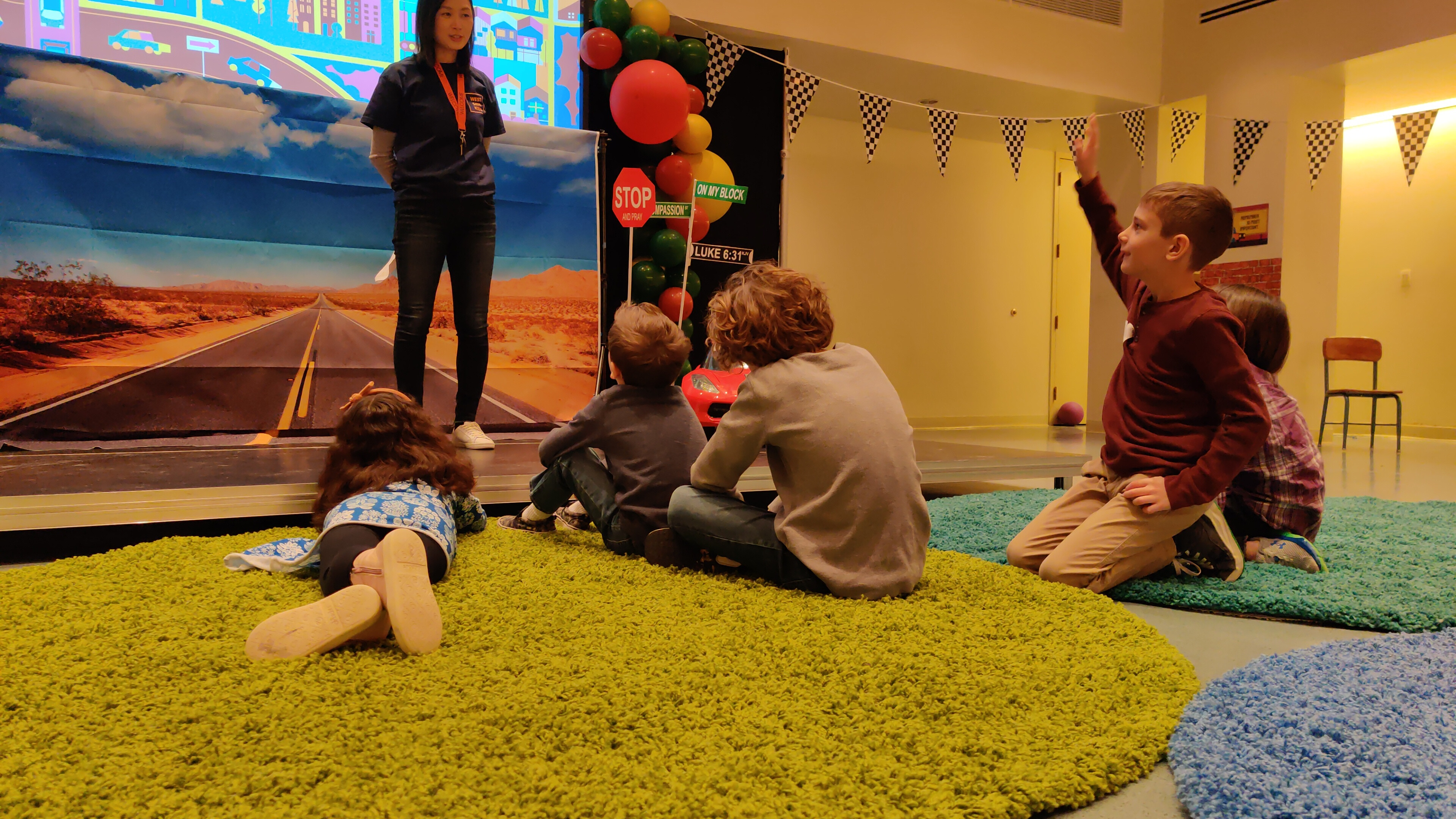 On Intergenerational Sundays, children are in worship with us. The children's choirs sing at the 10:30 am service, where the scripture follows the Sunday School lesson plan, and the sermon is family-friendly! The right-side transept also is transformed into a "Creative Worship Center" with colorful rugs for kids to sit on, coloring pages, and bingo games.