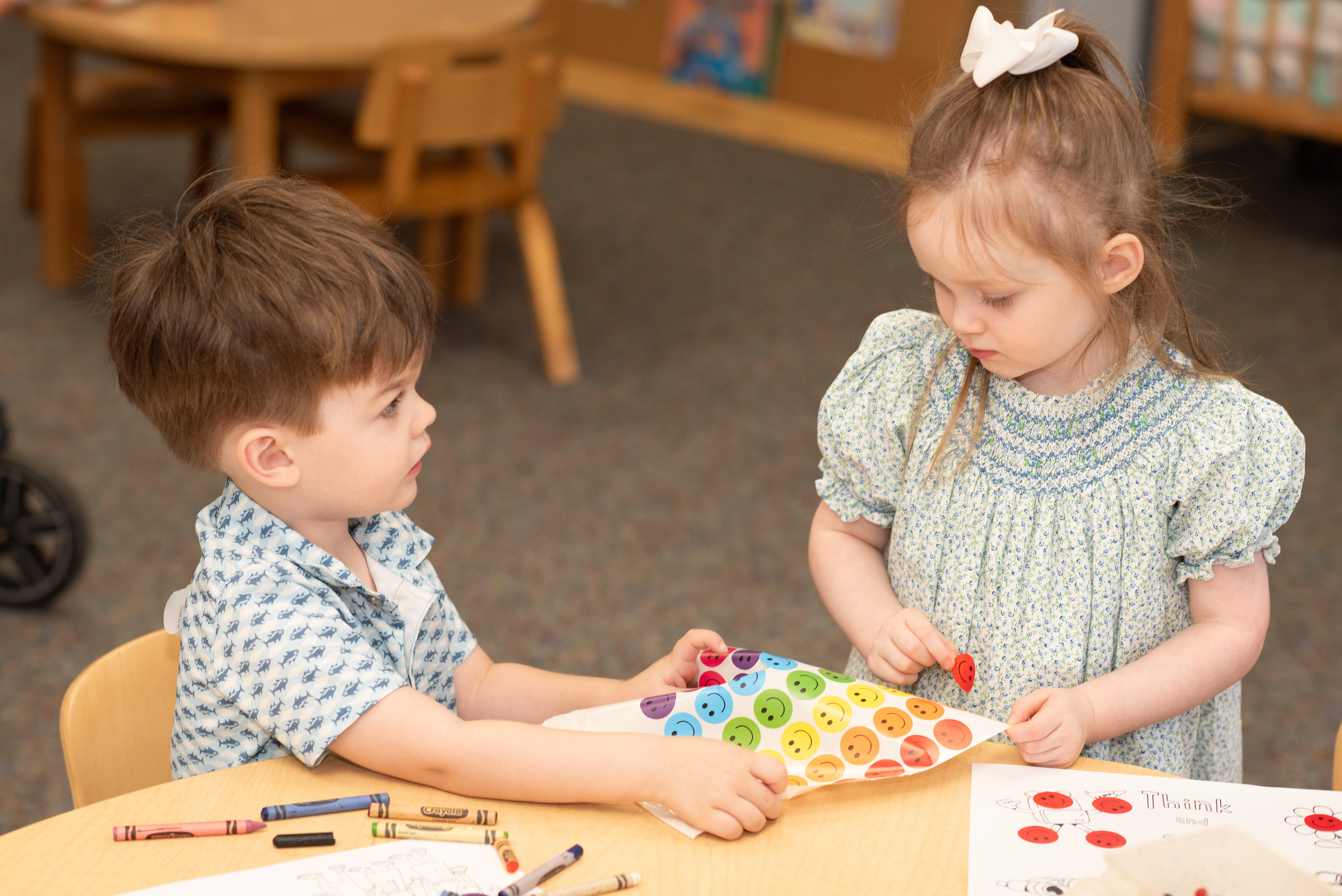 During worship, a caring and fun learning environment for infants and toddlers is provided in the nursery. Children also are welcome in the sanctuary during the service.